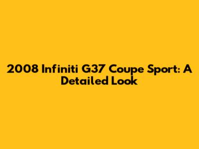 2008 Infiniti G37 Coupe Sport: A Detailed Look