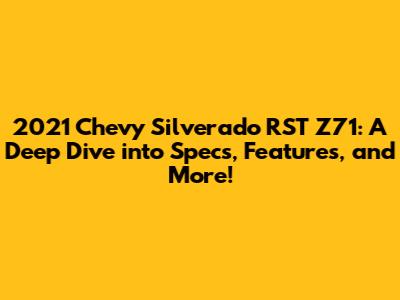 Hey everyone! Today, we're diving headfirst into the 2021 Chevy Silverado RST Z71. This truck is a real head-turner, packing a punch of power, style, and off-road capability. If you're considering getting one, you're in the right place! We'll explore everything from its engine options and interior features to its off-road prowess. Buckle up, because we're about to get down and dirty with the details.