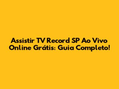 Assistir TV Record SP Ao Vivo Online Grátis: Guia Completo!