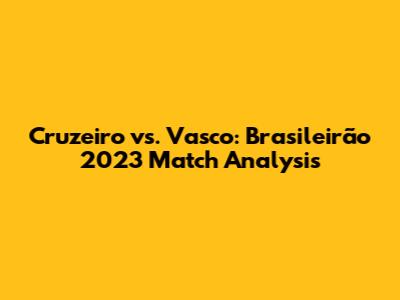 Cruzeiro Vs. Vasco: Brasileirão 2023 Match Analysis