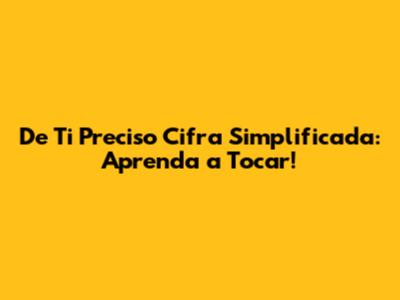 E aí, galera da música! Hoje a gente vai desmistificar uma parada que muita gente curte: a música "De Ti Preciso". Sabe aquela canção que toca a alma e faz a gente querer pegar o violão ou o teclado na hora? Pois é, essa é uma delas! E a melhor notícia é que a cifra simplificada dela não é nenhum bicho de sete cabeças. Então, bora lá aprender a tocar essa belezinha e impressionar a galera!