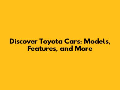 Discover Toyota Cars: Models, Features, And More