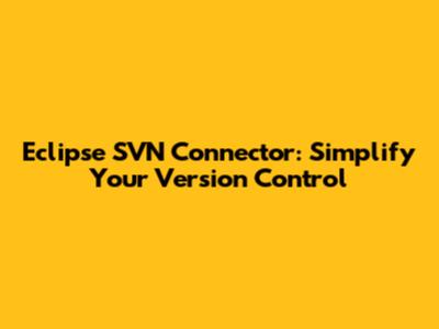 Eclipse SVN Connector: Simplify Your Version Control