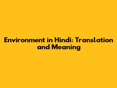 Environment In Hindi: Translation And Meaning