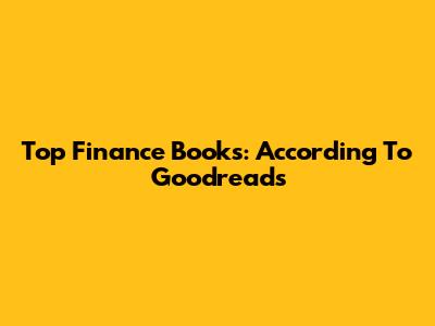 Top Finance Books: According To Goodreads