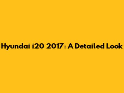 Hyundai I20 2017: A Detailed Look