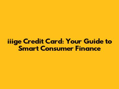 Iiige Credit Card: Your Guide To Smart Consumer Finance