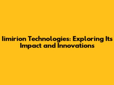 Iimirion Technologies: Exploring Its Impact And Innovations
