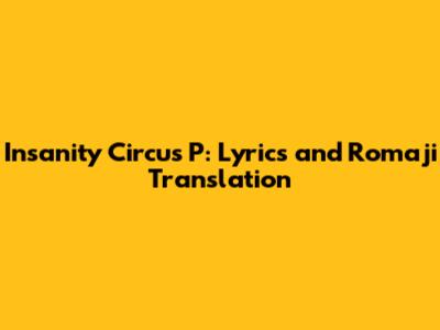 Insanity Circus P: Lyrics And Romaji Translation