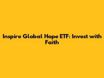 The investment strategy of the Inspire Global Hope ETF is pretty straightforward, but it’s built on a foundation of faith-based principles. The ETF tracks the Inspire International Hope Index, which uses a proprietary scoring system called the Inspire Impact Score. This score evaluates companies based on several criteria, including their adherence to biblical values, their impact on communities, and their ethical governance practices. Companies with high Inspire Impact Scores are included in the index, while those involved in activities that contradict Christian values are excluded. This screening process ensures that the ETF only invests in companies that align with its mission of promoting faith-based investing. The ETF’s investment strategy also involves diversification across various sectors and countries. While it primarily focuses on international companies, it aims to provide broad exposure to different industries, such as technology, healthcare, and consumer goods. This diversification helps to reduce risk and enhance potential returns. Additionally, the ETF may adjust its holdings based on market conditions and changes in the Inspire International Hope Index. The Inspire Global Hope ETF’s investment strategy is rooted in its commitment to faith-based values. This commitment is reflected in the Inspire Impact Score, which is used to evaluate and select companies for inclusion in the ETF. The Inspire Impact Score takes into account various factors, including a company’s adherence to biblical principles, its environmental impact, and its social responsibility initiatives. Companies that score high on these criteria are more likely to be included in the ETF, while those that do not align with these values are excluded. This rigorous screening process ensures that the ETF’s investments are aligned with its mission of promoting faith-based investing. The Inspire Global Hope ETF’s investment strategy also focuses on diversification across various sectors and countries. This diversification helps to reduce risk and enhance potential returns by spreading investments across a wide range of industries and geographic regions. The ETF may invest in companies in sectors such as technology, healthcare, consumer goods, and financials, as well as in countries around the world. This broad exposure helps to mitigate the impact of any one sector or country on the ETF’s overall performance. Furthermore, the Inspire Global Hope ETF’s investment strategy is designed to be long-term in nature. The ETF aims to provide investors with a stable and consistent return over time, rather than seeking to generate short-term gains through speculative trading. This long-term focus aligns with the ETF’s mission of promoting faith-based investing and supporting companies that are committed to ethical and sustainable business practices. By taking a long-term view, the ETF aims to create value for investors while also making a positive impact on the world.