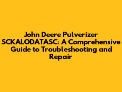 John Deere Pulverizer SCKALODATASC: Troubleshooting & Repair
