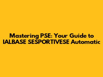 Mastering PSE: Your Guide To IALBASE SESPORTIVESE Automatic