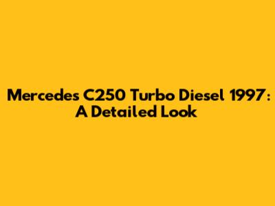 Finding parts for the C250 Turbo Diesel is generally not too difficult, as many parts are still available from Mercedes-Benz or aftermarket suppliers. However, some parts may be more expensive or harder to find than those for more common cars. Overall, the 1997 Mercedes C250 Turbo Diesel can be a reliable and enjoyable car to own, provided it is properly maintained and cared for. Addressing any issues promptly and keeping up with regular maintenance will help ensure it lasts for many years to come.