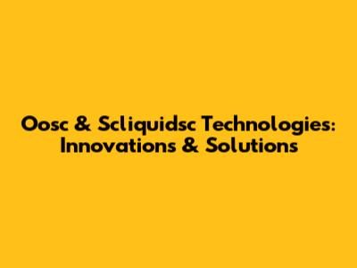Oosc & Scliquidsc Technologies: Innovations & Solutions