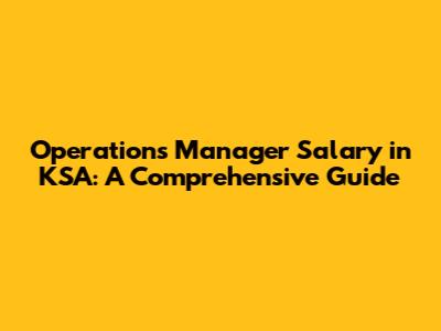 Operations Manager Salary In KSA: A Comprehensive Guide