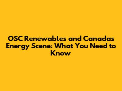 OSC Renewables: Canada's Energy News Explained