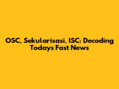 OSC, Sekularisasi, ISC: Breaking News & Updates