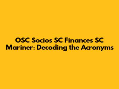 OSC Socios, SC Finances, And SC Mariner Explained
