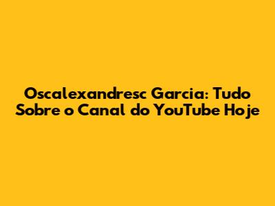 Oscalexandresc Garcia: Tudo Sobre O Canal Do YouTube Hoje