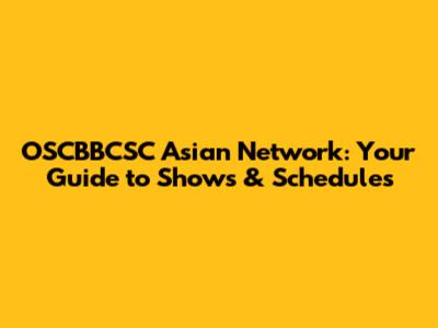 OSCBBCSC Asian Network: Your Guide To Shows & Schedules