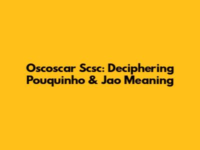 Oscoscar Scsc: Deciphering 'Pouquinho' & 'Jao' Meaning