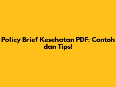 Policy Brief Kesehatan PDF: Contoh Dan Tips!