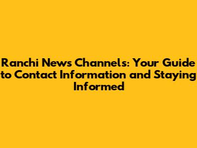 Ranchi News Channels: Contact Info & Stay Updated