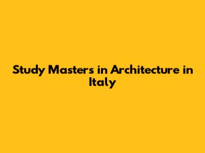 Study Architecture Masters In Italy