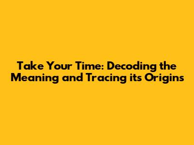 Take Your Time: Meaning, Origin, And How To Use It