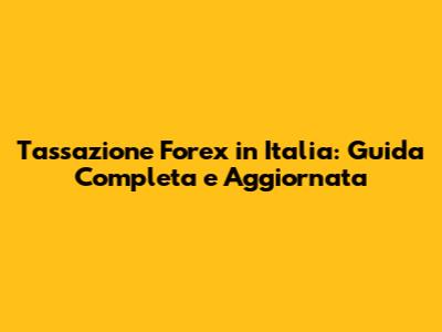 Tassazione Forex In Italia: Guida Completa E Aggiornata