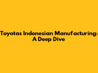 Toyota's Indonesian Manufacturing: A Deep Dive