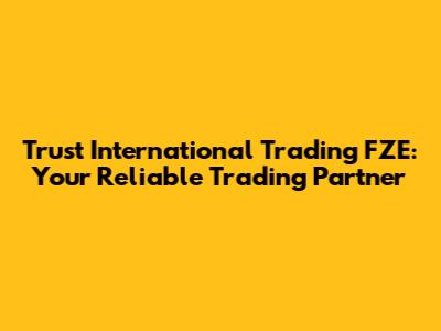 Trust International Trading FZE: Your Reliable Trading Partner