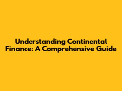 Understanding Continental Finance: A Comprehensive Guide