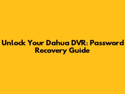 Unlock Your Dahua DVR: Password Recovery Guide