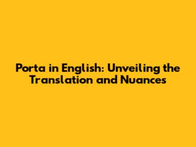 Unlocking 'Porta': Your Guide To The English Translation