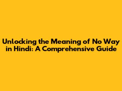 Unlocking The Meaning Of 'No Way' In Hindi: A Comprehensive Guide