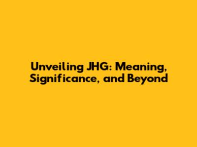 Unveiling JHG: Meaning, Significance, And Beyond