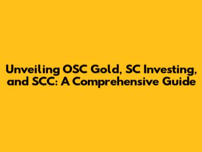 Unveiling OSC Gold, SC Investing, And SCC: A Comprehensive Guide