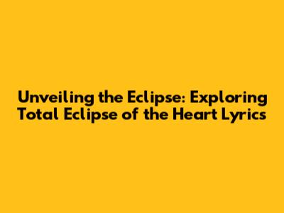 Unveiling The Eclipse: Exploring 'Total Eclipse Of The Heart' Lyrics